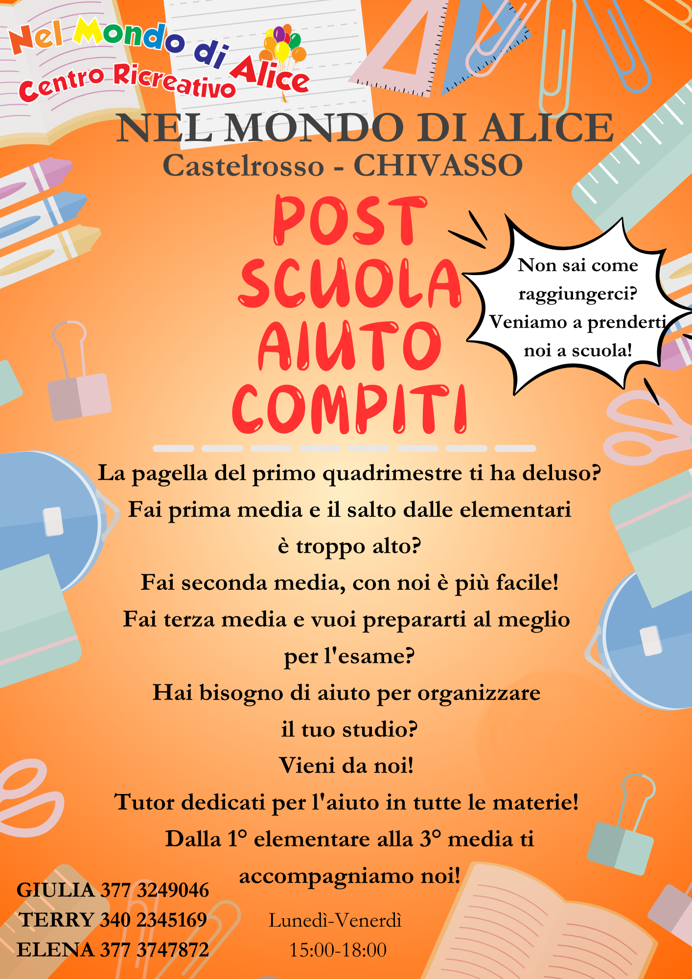 Si pone a fianco delle famiglie per aiutarle e sostenerle nella gestione dei ragazzi, nello studio così come nelle attività extra scolastiche.